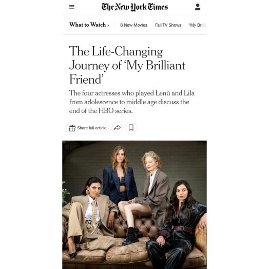 Irene is now playing LILA in the final season of MY BRILLIANT FRIEND for HBO and Rai1